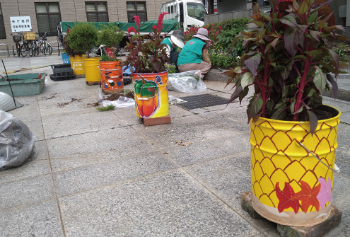 北区役所前花壇の花苗の植替え作業がお行われました。